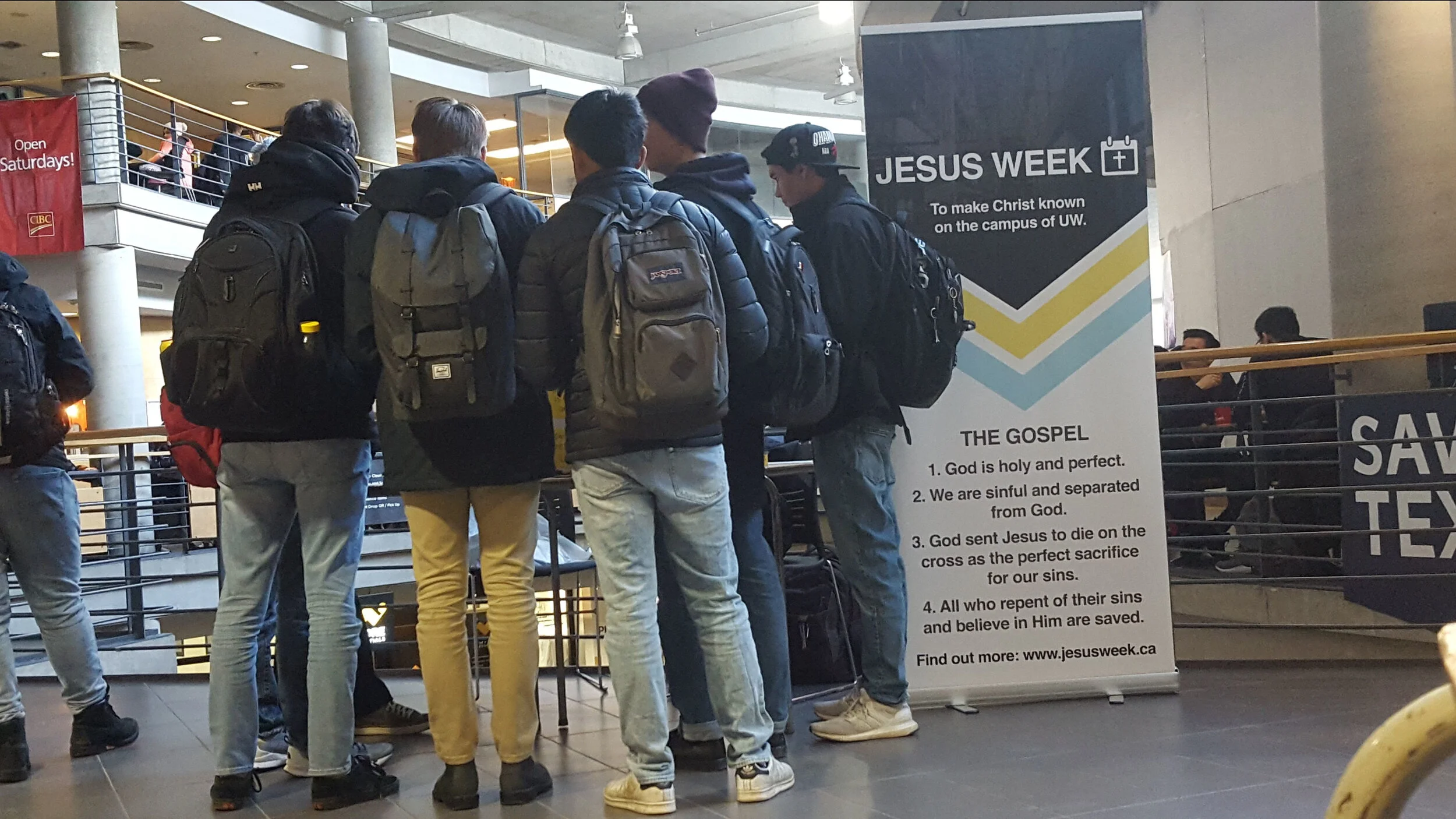 Top: We had a Jesus Week booth where we asked people what they believe about Jesus and Christianity
