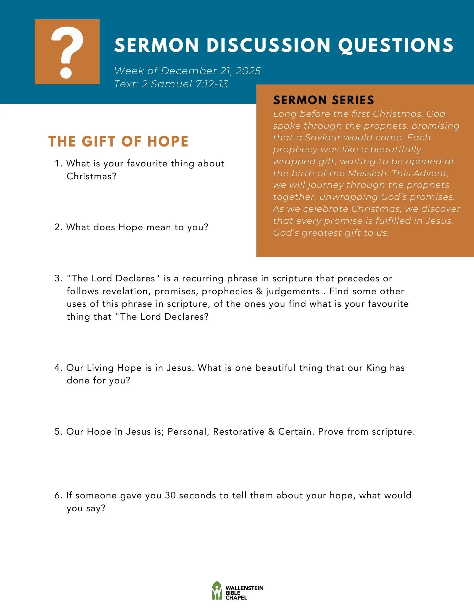 PRAYER & STUDY GUIDES Week of January 25, 2026 Sermon Discussion Questions Archive Sermon Discussion Questions Prayer Digest Archive Prayer Digests